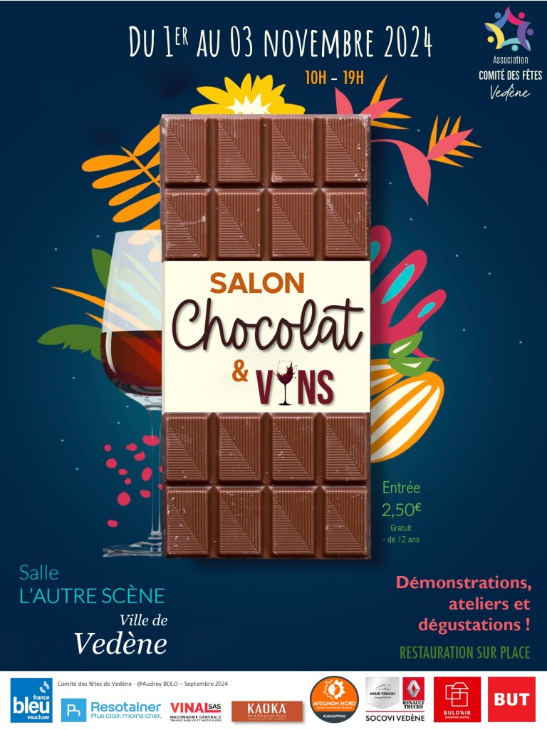 Que vous soyez amateur de vin, passionné de chocolat ou simple curieux, cet événement est fait pour vous ! Venez seul, en couple, ou entre amis pour partager un moment convivial. https://salonchocolatetvins.wixsite.com/vedene